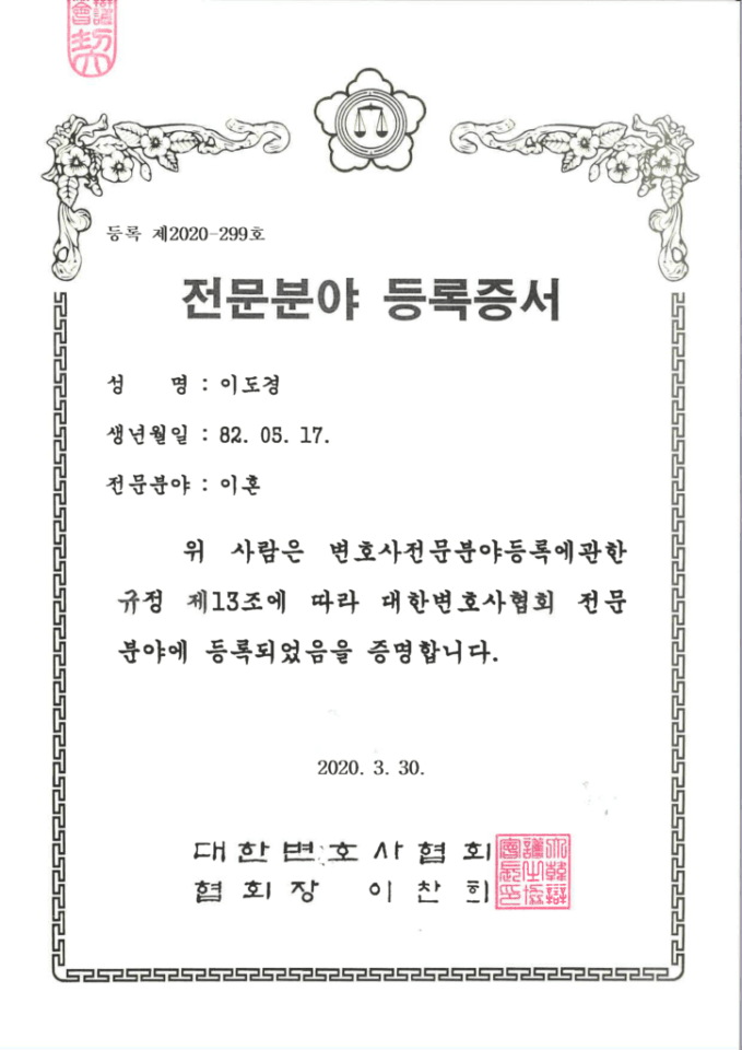 Korean Bar Association certifies Simon D. Lee as an “Expert Divorce Attorney” Over the past 3 years attorney Simon D. Lee has successfully resolved over 30…